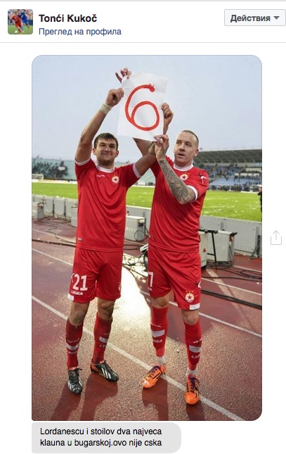 "Йорданеску и Стоилов са двамата най-големи клоуни в България. Това не е ЦСКА", пише Кукоч без да уточнява какво точно визира - играта на отбора или пък клуба ЦСКА-София.