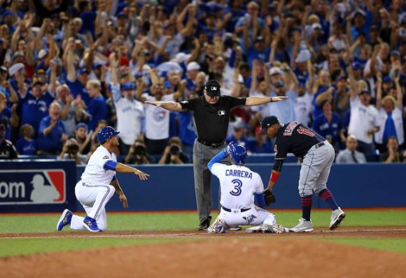 Кливланд Индиънс се доближи на една победа от първо участие в Световните серии на МЛБ през XXI век. "Индианците" сразиха Торонто Блу Джейс с 4:2 като гости и поведоха с 3-0 във финала на Американската лига. В предишните 35 случая само един отбор е заличавал такъв пасив в плейофна серия до 4 победи – Бостън Ред Сокс срещу Ню Йорк Янкис на път към историческата шампионска титла през 2004 г.
