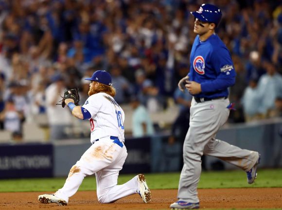 Същевременно атаката на домакините се разправи бързо с аса на Чикаго Джейк Ариета (L 0-1) и го извади от игра след 5+ ининга с 4 точки от 6 хита, включително два хоумръна. Кори Сийгър откри резултата с единичен хит в 3-тия, Ясмани Грандал направи 3:0 с двоен хоумрън в 4-тия, а Джъстин Търнър сложи край на дежурството на Ариета със соло изстрел за начало на 6-ия. Крайният резултат бе фиксиран в 8-ия чрез двоен хит на Джок Пидърсън и аут по земя с трета RBI за Грандал.