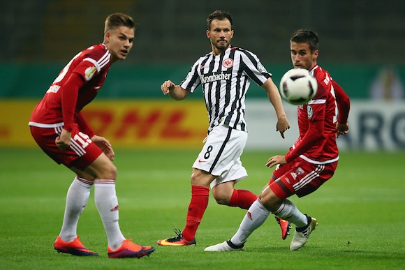 В единствения тази вечер мач между представители на елита Айнтрахт (Франкфурт) се наложи над Инголщат 04 след дузпи. В редовното време и продълженията съперниците не успяха да си отбележат гол, въпреки че след 88-ата минута домакините бяха с човек по-малко заради изгонването за два жълти картона на Марко Фабиан.