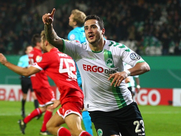 В друга среща евробоецът Майнц 05 допусна нелогична загуба с 1:2 при визитата си на Гройтер Фюрт и отпадна. Момчетата на Мартин Шмит мачкаха съперника си и след куп пропуски водеха само с 1:0 до 79-ата минута, след което обаче допуснаха пълен обрат, оформен с гол на Бериша в последната минута.