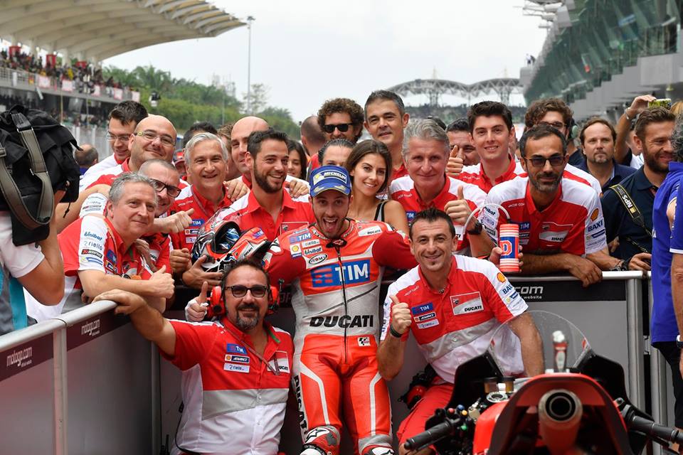 Андреа Довициозо записа първата си победа от седем години насам и сподели, че това му е отнело прекалено много време. Той бе много близо до нея в Австрия тази година, когато съотборникът му Яноне му я отмъкна, после се качи на подиума на "Мотеги", а до победата стигна, печелейки и полпозишън. Неговият успех бе и важна стъпка за Ducati, които развиват значително мотора и екипа си, откакто Джиджи Далиня стана директор, а целта им догодина е титла.