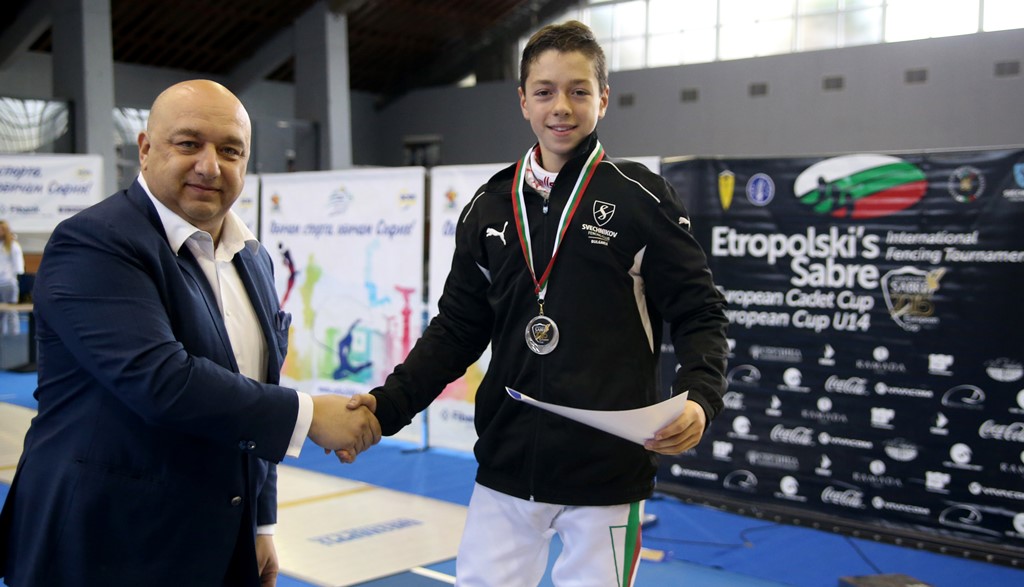 Министърът на младежта и спорта Красен Кралев награди финалистите при момчетата в кръга на Европейската купа на сабя до 14 години, който се провежда в реновираната зала София. Купата отиде в Мохамед Календер от Турция след много оспорван финал с българина Тодор Стойчев, който остана на второ място. Третото място си поделиха Георги Христов от България и Рарес Дику от Румъния.