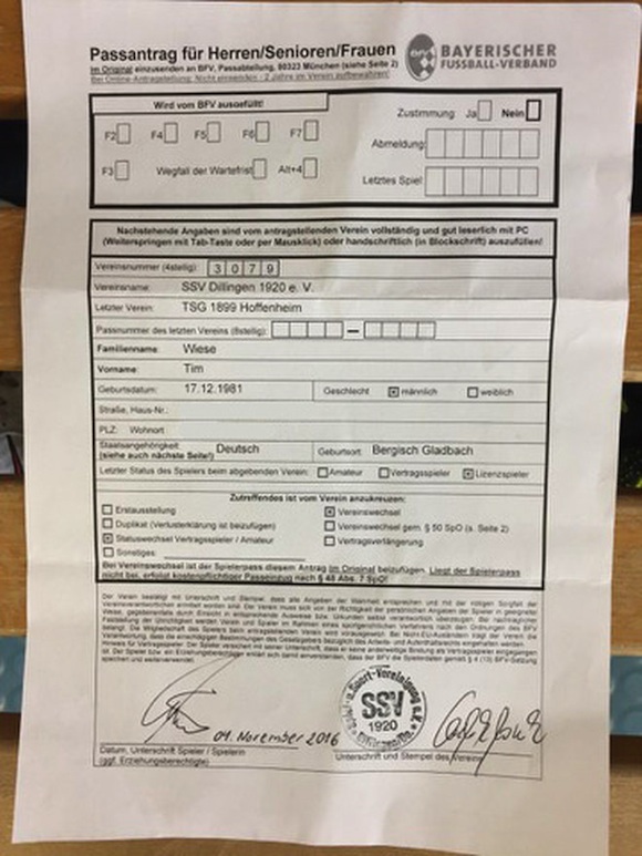 Първоначално се предполагаше, че това рекламен трик на 34-годишният здравеняк, но после се появи и снимка, на която се вижда как клубът подава необходимите документи за издаването на картотека на Вийзе.