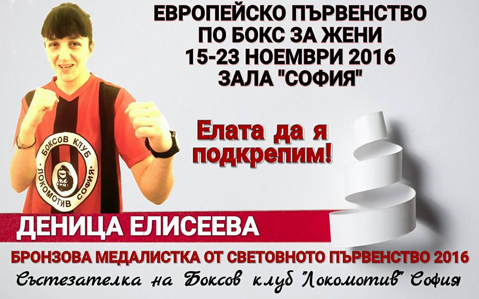 От боксов клуб Локомотив призоваха почитателите на бокса да подкрепят родните състезателки на Европейското първенство за жени, което започва утре в столичната зала "София" и ще продължи до 23 ноември. Представителки на "железничарския" клуб са бронзовата медалистка в категория до 57 кг от Световното първенство в Астана (Казахстан) тази година Деница Елисеева и световната шампионка в категория до 54 кг от планетарния форум през 2014 г. Станимира Петрова.