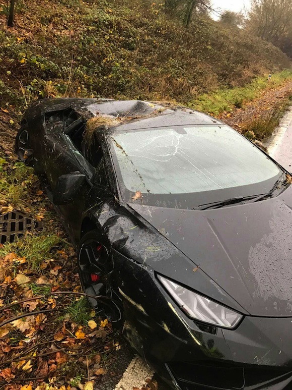 Той отивал на тренировка в понеделник сутринта, когато черният супер автомобил на стойност 200 000 паунда поднесъл в проливния дъжд на магистрала М1. Пороят бе донесен от бурята Ангъс, която засегна редица региони на Великобритания, сред които и столицата Лондон.