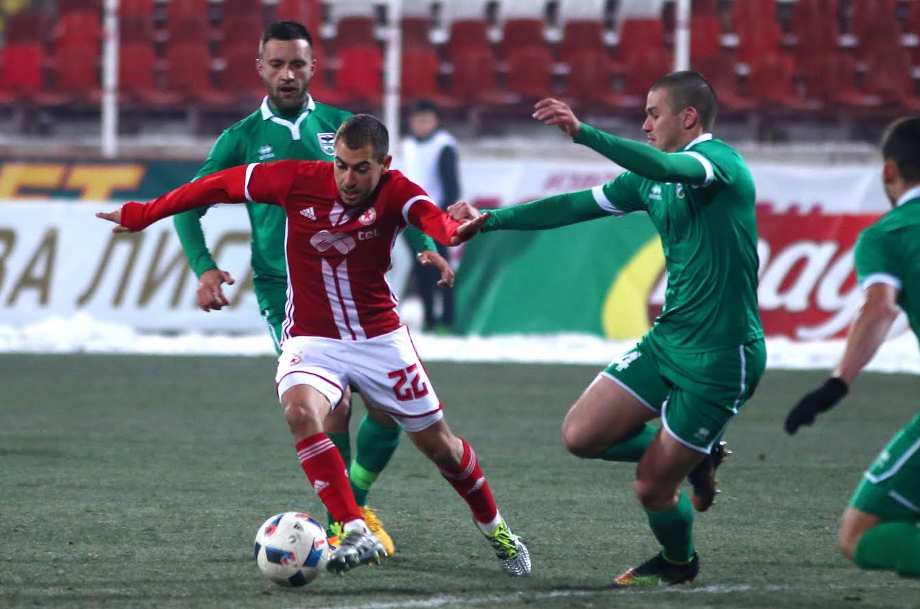 В 12-ата минута "червените" излязоха напред в резултата. Рафаел Перес отправи удар с глава, но стражът Костов изби. При добавката Йорданов не сбърка с левия крак за 1:0.