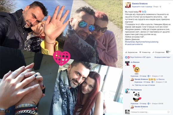 Дъщерята на Наско и Илиана явно е много влюбена, след като цитира поета Дамян Дамянов: "Някъде между падащите снежинки и тишината на нашите стъпки чух коледните звънчета... чух туптенето на сърцата ни и видях една приказна картина! Създадох те от обич и мъгла. Невидим образ на мираж най-видим. Ела! Строши съня ми и ела! Жадувам двама с тебе да отидем далече - в оня, приказния свят, желан от памтивека от душите - единствен рай след дългия ни ад. Любов се казва той".