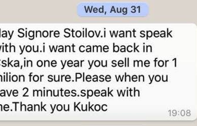 Вижте какъв SMS пратил Кукоч на Стоилов - обещал на "червените" 1 млн. след година