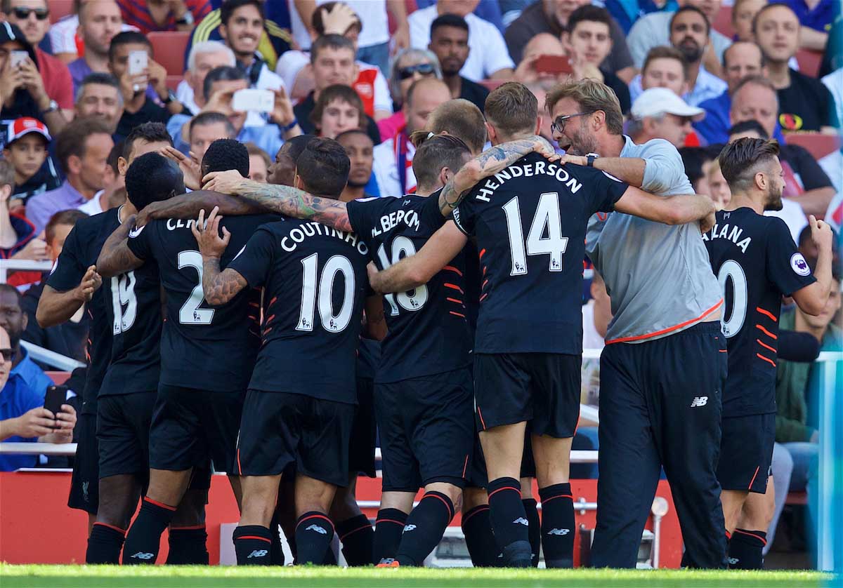 Само 18 минути след подновяването на играта „червените” вече водят с 1:4 след изумителен период, в който плавността, скоростта и движението в атаките на гостите (особено при головете на Лалана и втория на Коутиньо) обобщават почти всичко отработено от Клоп през лятото. Мачът завършва 3:4, с твърде напрегнат излишно край, ала следобедът е опияняващ за привържениците на Ливърпул, които се наслаждават на възможността да натрият сол на обичайните за началото на сезон рани в тима на Арсен Венгер.
