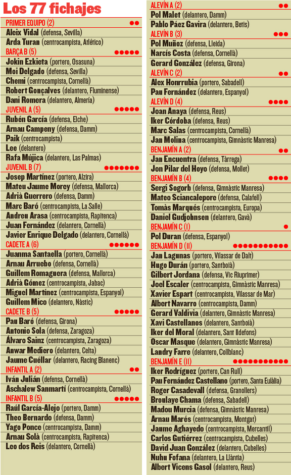 "Лос кулес" ще могат да разчитат и на още 75 нови играчи, станали част от детско-юношеската школа. Корейският суперталант Лий ще навърши 18 години след два дни и вече ще е свободен да подпише договор с Барса и да играе за "лос блаугранас". Вижте списък на всички футболисти, за които падна ембаргото.