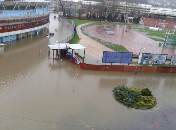 Стадионът на Селта (Виго) "Балаидос" е сериозно наводнен преди неделния шампионатен сблъсък между "небесносините" и временния водач в Примера Атлетико Мадрид. В Twitter се появиха снимки, на които се вижда много голямо количество вода пред съоръжението, като колите са наполовина потопени.