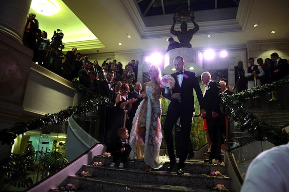 Медиите в западната ни съседка разпространиха снимки от сватбеното тържество на вратаря на Лудогорец и красивата Снежана, което се състоя в изискания хотел "Хаят" в сръбската столица. Там двамата влюбени си казаха "Да!". Църковният ритуал пък бе в храма "Ружица".