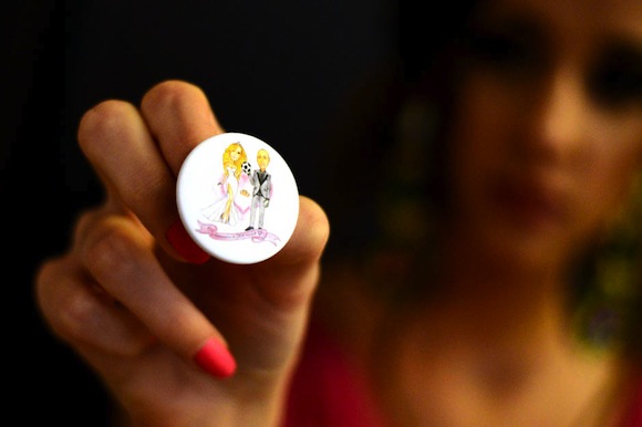 Двамата с Милан бяха направили значки с техния лик, които подариха на всички гости за спомен.