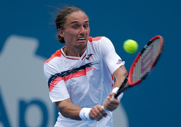 В десетия гейм все пак Григор поведе с 40:15 и имаше две възможности за връщане на пробива. Долгополов обаче се спаси от първата с бомбен сервис, а при втората Григор сгреши, като прати топката в аут. Украаинецът допусна двойна грешка и Григор получи нова възможност за пробив, но опонентът му се спаси. Последва нова грешка на Григор, който изкара ретур в аут и така първият сет отиде на сметката на Долгополов. Последва близо едночасова пауза заради изсипалия се над кортовете дъжд, след което двамата тенисисти подновиха битката си.