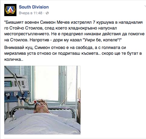 "Бившият военен Симеон Мечев изстрелял 7 куршума в нападналия го Стойчо Стоилов, след което хладнокръвно напуснал местопрестъплението. Не е предприел никакви действия да помогне на Стоилов. Напротив - дори му казал "Умри бе, копеле"!"