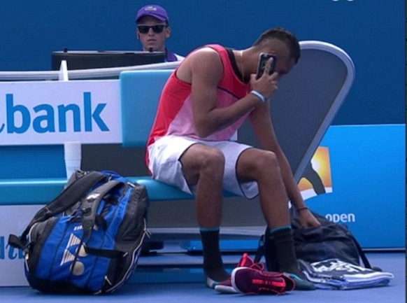 По време на пресконференцията след загубата Кирьос коментира случилото се без притеснение. "Мой приятел ми звънна." На въпрос на журналист дали обаждането е било важно тенисистът заяви: "Донякъде… Всъщност не беше".