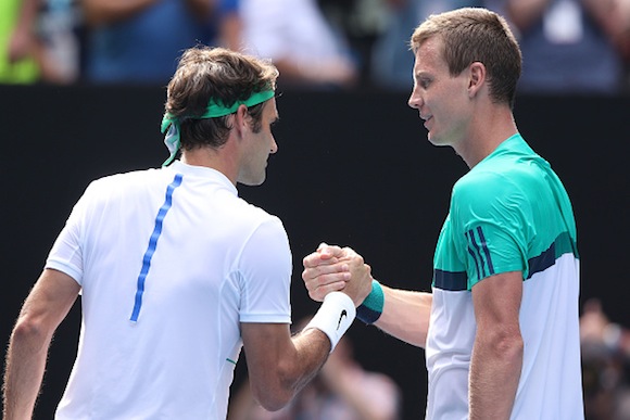 Роджър Федерер изнесе поредната си лекция на Откритото първенство на Австралия по тенис. Този път в ролята на негов ученик се оказа коравият Томаш Бердих, който не можа да направи нищо съществено срещу швейцареца и загуби с 6:7(4), 2:6, 4:6 в четвъртфиналите на първия за годината турнир от Големия шлем. Маестрото бе с класа над съперника си, който беше спечелил последните им две битки на корта в турнирите от голямата четворка (в четири сета на "Уимбълдън" през 2010 година и на US Open пред 2012-а). Така поставеният под №3 Федерер подпечата визата си за своя 12-и полуфинал на Australian Open и общо 39-и в Шлема.