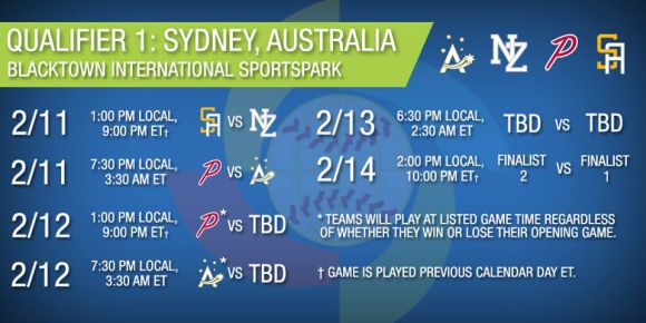 Две седмици преди началото на първата квалификация за Световната бейзболна класика '17 организаторите обявиха съставите и програмата на турнира от Група 1 в Сидни (Авл, 11-14 февруари). В разширените списъци от по 28 състезатели на Австралия, Нова Зеландия, Филипините и Южна Африка се открояват имената на 16 таланти от младежката система на клубовете в МЛБ.