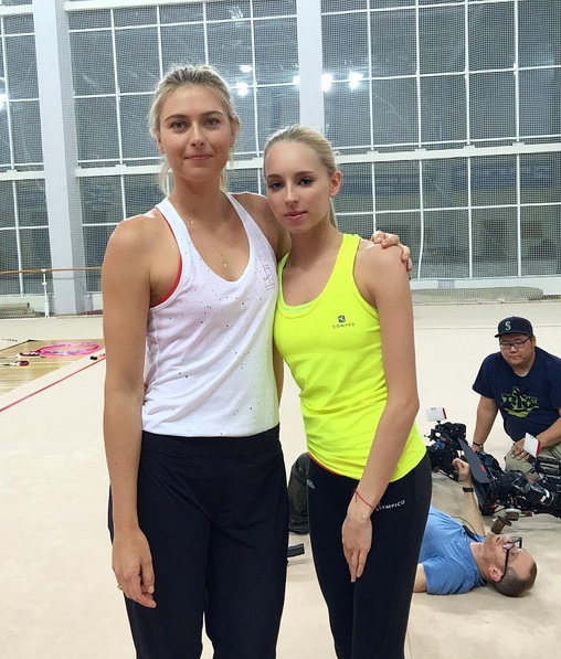 Руската тенисистка Мария Шарапова смени за малко тениса с художествена гимнастика. Бившата приятелка на Григор Димитров посети тренировка на грациите от националния отбор на Русия. Маша реши да се пробва с всички уреди.