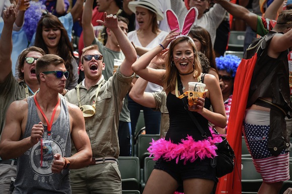 Фенове по време на третия, заключителен ден на турнира по ръгби в Хонконг.
