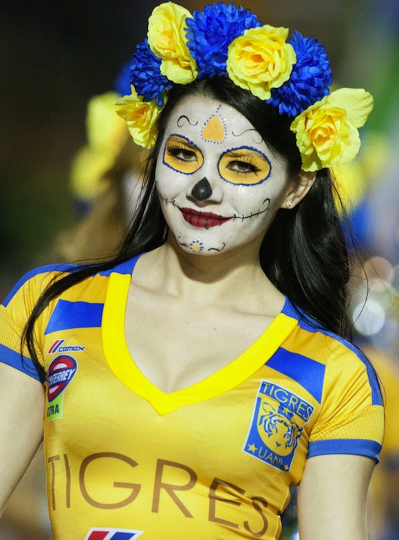 Почитателка на "Тигрите" по време на мач от турнира за Купата на Мексико по футбол срещу отбора на Сантос.