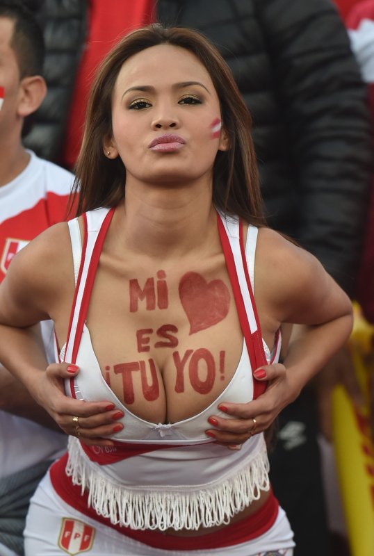 Привърженичка на националния отбор по футбол на Перу по време на мача от Копа Америка срещу Бразилия (на горната снимка).