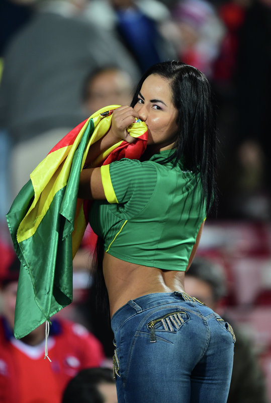 Почитателка на националния отбор на Боливия по футбол в очакване на мача от Копа Америка срещу Чили.