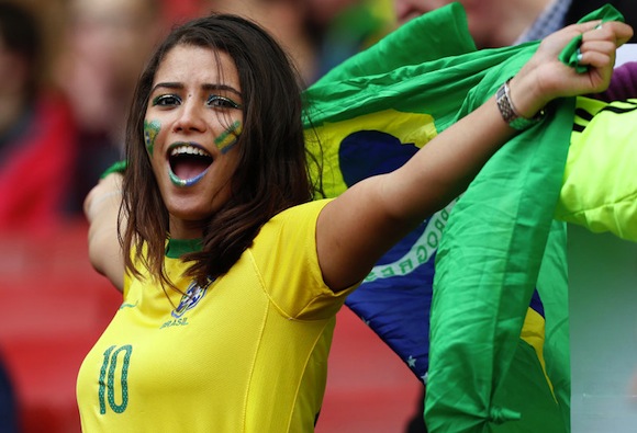 Фенка на националния отбор по футбол на Бразилия по време на контролата срещу Чили в Лондон.