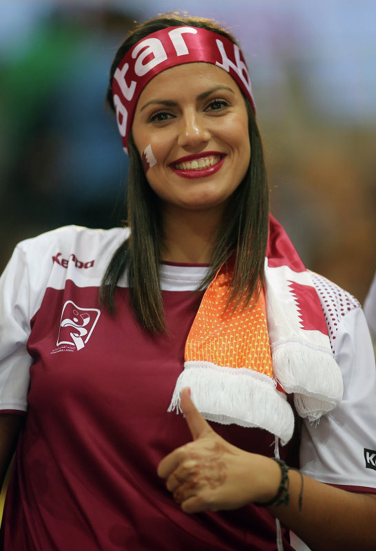 Почитателка на мъжкия отбор на Катар по хандбал по време на мача от световното първенство срещу Беларус.