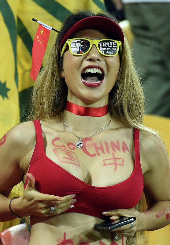 Фенка на националния отбор по футбол на Китай по време на мач от Купата на Азия срещу Австралия.