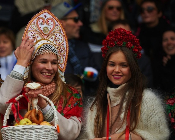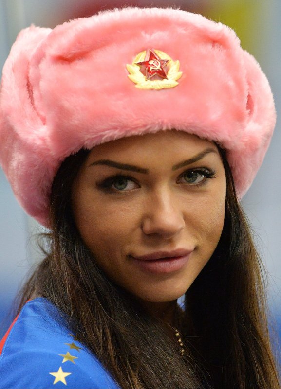 Почитателка на националния тим на Русия по време на мач от груповата фаза на световното първенство по хокей на лед срещу отбора на Дания.