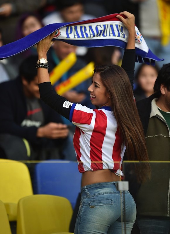 Привърженичка на националния отбор по футбол на Парагвай по време на четвъртфиналния мач на Копа Америка срещу Бразилия.
