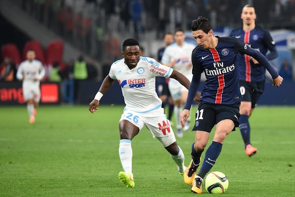 Шампионът на Франция Пари Сен Жермен постигна девета поредна победа в Лига 1, след като спечели голямото дерби срещу Олимпик Марсилия. Тимът на Лоран Б;ан се наложи с 2:1 на "Велодром" и продължава да няма загуба от началото на сезона. Златан Ибрахимович и Анхел ди Мария отбелязаха попаденията за парижани, а за домакините точен беше Реми Кабела.
