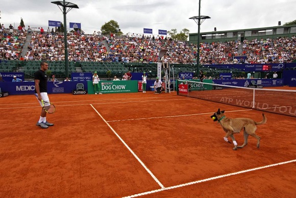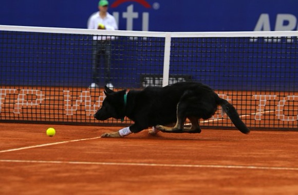 На любопитна сцена станаха свидетели зрителите на провеждащото се тази седмица Открито първенство по тенис на Аржентина в Буенос Айрес. Французинът Жо-Вилфред Цонга и австриецът Доминик Тийм направиха малко шоу за публиката с помощта на… две кучета. Четириногите симпатяги влязоха в ролята на момчета, подаващи топките на играчите.