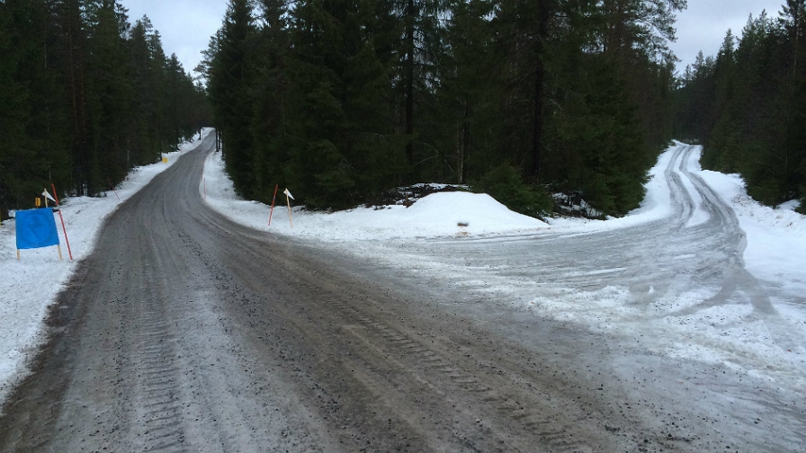 След промените за ралито този етап ще се кара само един път в събота. Той е един от най-южно разположените етапи, като се намира североизточно от центъра на ралито в Karlstad. Снимката е заснета на 1.8 км вътре в етапа, като настилката все още е покрита с лед. Навътре в етапа този лед се превръща на места в сняг, а в други липсва изобщо и пътят става кален и изпълнен с вода.