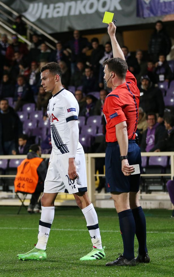Младата звезда на Тотнъм Деле Али извади късмет и не получи червен картон за неспортсменска своя проява по време на мача с Фиорентина от 1/16-финалите на турнира Лига Европа. 19-годишният Али ритна в корема падналия на земята сръбски защитник на "виолетовите" Ненад Томович. Това се случи през първото полувреме на зъвршилата при резултат 1:1 среща във Флоренция. Германският рефер Феликс Цвайер показа жълт картон на талантливия халф на "шпорите" от Лондон, но не трябваше ли младокът да бъде наказан по-строго в тази ситуация?