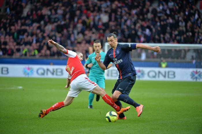 Френският шампион Пари Сен Жермен показа отлична форма и надви с 4:1 Реймс в мач от 27-ия кръг на Лига 1. Шведската звезда на парижани Златан Ибрахимович отново бе над всички, след като вкара два гола и асистира за другите два на "Парк де Пренс". Таранът първо асистира на Грегори ван дер Вийл (12). Гостите изравниха в 33-ата минута чрез Принс Онианге, който се възползва от груба грешка на Кевин Трап. Радостта на Реймс бе кратка, тъй като Златан върна аванса на ПСЖ в 43-ата минута. Две минути по-късно Едисон Кавани също записа името си сред голмайсторите. Уругвайският нападател, който донесе победата над Челси в Шампионската лига през седмицата бе изведен отлично от Ибра и вкара за 3:1. Неприятната новина за Лоран Блан е, че секунди преди попаденията на Ибра и Кавани другата звезда в нападателното трио Анхел ди Мария напусна с травма.
