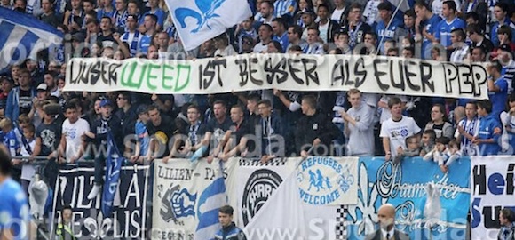 Опънатият от запалянковците на Байерн (Мюнхен) транспарант с текст, в който се споменава умалителното име на треньора Джосеп Гуардиола - Пеп, е отговор срещу друг плакат, който преди време феновете на Дармщат 98 бяха издигнали, пояснява Sport1. Днес, по време на двубоя между двата тима на "Алианц Арена", ултрасите на баварците вдигнаха платно, на което пишеше "Пеп никога не е бил нашето нещо". По-рано през сезона пък, на двубоя в Дармщат, местните запалянковци провокираха с текст "Нашата трева е по-добра от вашия Пеп", като под "Pep(р)" имаха предвид жаргонното наименование на амфетамин.