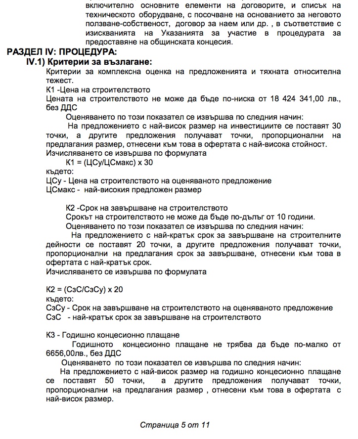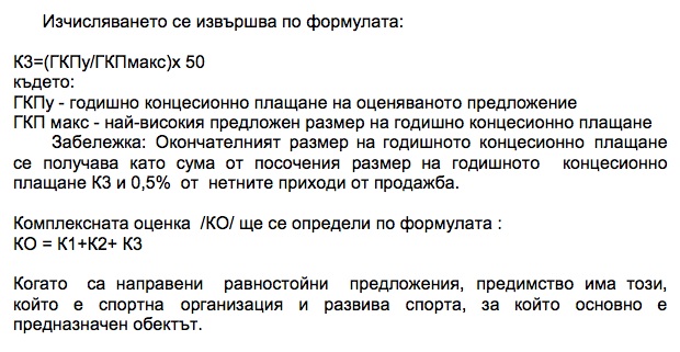 Забележка: Окончателният размер на годишното концесионно плащане се получава като сума от посочения размер на годишното концесионно плащане и 0,5 % от нетните приходи от продажба.