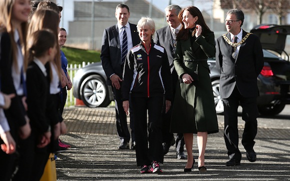 Съпругата на принц Уилям посети училище в Единбург, Шотландия, облечена в палто на Max Mara. По-късно тя го смени със спортен екип и се включи в урока по тенис. Заниманието, което цели да събуди отрано интерес към играта сред децата, продължи час и половина. Катрин стриктно изпълняваше всички упражнения, показани от Мъри.