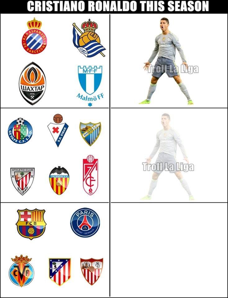 Легендата на Барселона публикува и снимка на Флорентино Перес, който понася удар след удар в последните месеци. Популярната интернет страница за майтапи Troll Football също не подмина мадридското дерби. Кристиано Роналдо отново не вкара гол срещу голям съперник и сякаш пази попаденията си за по-слабите отбори.