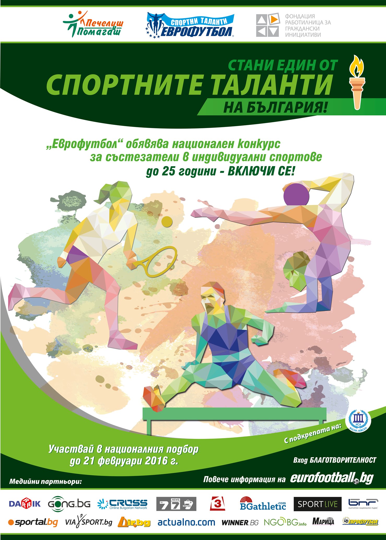 За популяризирането на програма "Спортни таланти" на "Еврофутбол" съдействие оказаха Националната спортна академия "Васил Левски", спортни училища от цялата страна, федерации и клубове. Медийни партньори на програмата са сайтовете sportal.bg, dir.bg, gong.bg, viasport.bg, bgathletic.com, ngobg.info, actualno.com, sportlive.bg, winner.bg, вестниците „Еврофутбол“ и „Марица“, агенция КРОС, телевизиите ТВ7, News7 и Канал 3, както и радиата Дарик и БНР.