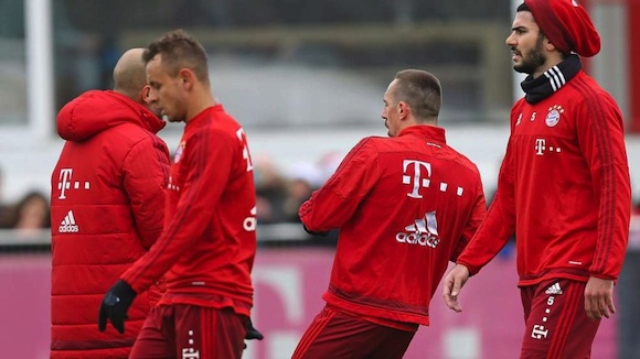 Преди днешната тренировка старши треньорът на Байерн (Мюнхен) Джосеп Гуардиола на шега удари леко с юмрук в челюстта Франк Рибери, отбеляза Bild. Френският футболист разбра, че това е акт без лоши намерения и го посрещна с усмивка. В събота срещу Волфсбург бившият национал на "петлите" за пети път се появи на терена през този сезон и след като направи една асистенция, беше избран за играч на мача.