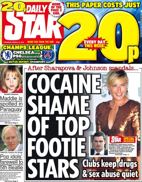 Материалът на Daily Star идва след признанието на тенисистката Мария Шарапова за положителната й допинг проба, както и развитието на делото срещу бившия футболен национал на Англия Адам Джонсън за секс с малолетна. Във връзка с втория случай ръководител на бившия му клуб Съндърланд беше принудена да напусне, защото е знаела за провинението на Джонсън, но не е информирала полицията. Играчът е обвинен в това, че е склонявал към секс 15-годишно момиче и е заплашен от затвор.