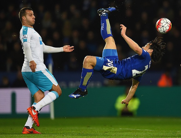 В 25-ата минута Оказаки вдигна на крака феновете на "Кинг Пауър Стейдиъм" с много важен и в същото време зрелищен гол. Японецът реагира мигновено след подаване с глава на Варди и с акробатичен удар успя да изненада стража на "свраките" Роб Елиът.