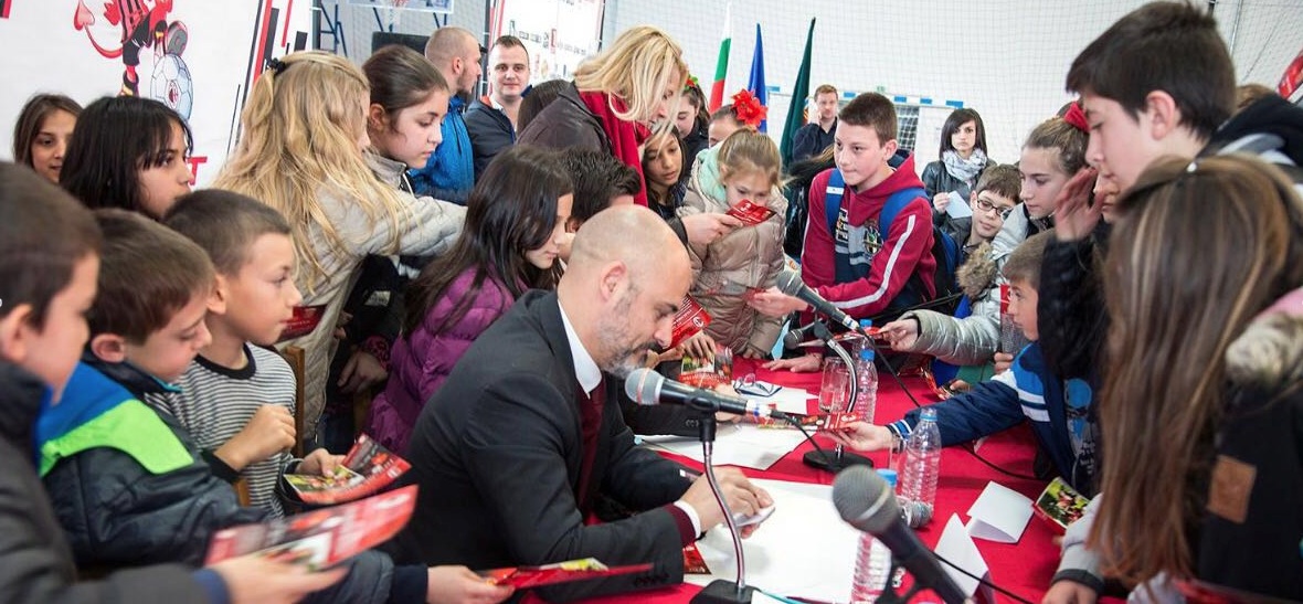 Днес стотици деца нападнаха представителите на Милан за автографи в Дряново, а такива трябваше да раздават Станислав Генчев и Тодор Георгиев (Теди Джорджо) – председател на Общинския съвет в Дряново.