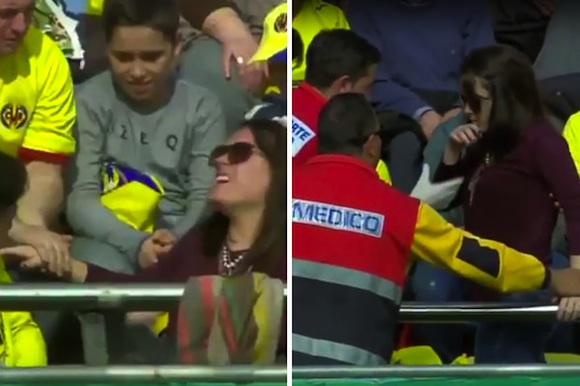 Млада жена почти припадна заради силен удар на Лионел Меси, който тя спря с ръка. Това се случи по време на вчерашния мач на Барселона срещу Виляреал на "Ел Мадригал" от испанското първенство. В 15-ата минута нападателят на гостите отправи шут, който мина над вратата и летеше точно към въпросната дама в трибуните, която вдигна ръка, за да се предпази. Изглежда, че болката е била много силна, защото тя видимо изпитваше болка и на помощ се притекоха парамедици.