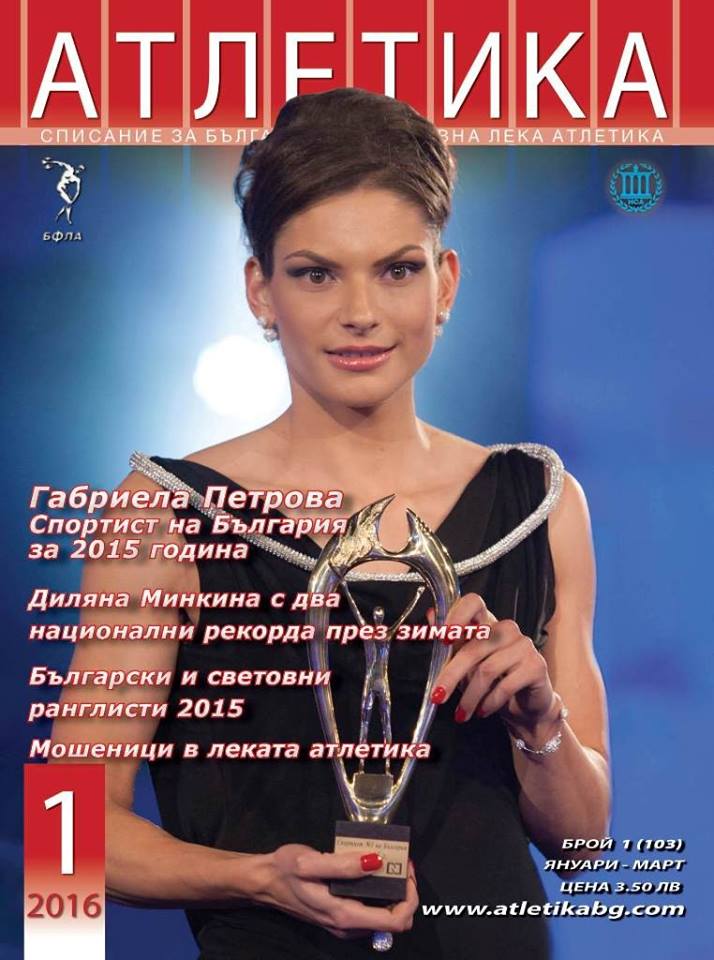 Брой 1 на списание "Атлетика" за 2016 година ще излезе на 23 март. Корицата на броя отново е посветена на Габриела Петрова. В края на миналата година Габриела беше избрана за Спортист на България за 2015 година. Списание "Атлетика" и партньори на БФЛА също наградиха Петрова и треньора й Атанас Атанас като най-добър атлет и треньор на страната ни на специална церемония, за която екипът на списанието припомня на страниците си.