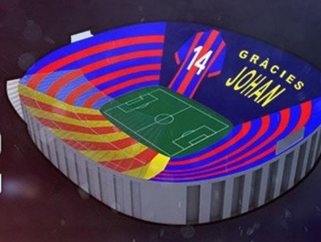 Стана ясно и каква ще е хореографията за утрешния мач. Хиляди разноцветни квадратчета ще оформят синьо-червена фланелка с номер 14 и същия надпис "Gràcies Johan".